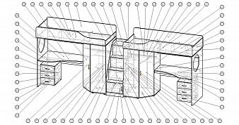 Кровать-чердак с рабочей зоной Мираж 17 BMS
