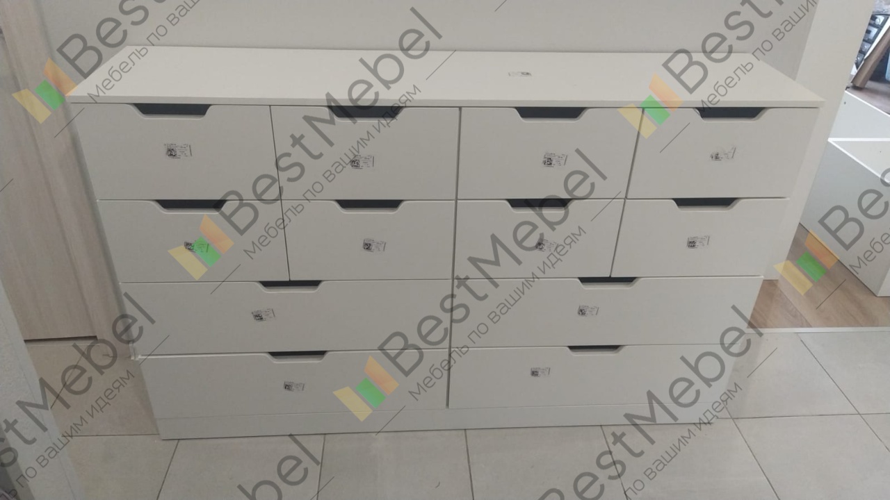 Заказ 00000896805, изделие Комод Нордли Nordli 14 (1700х1190х470) Понравилось орошее качество материалов, простая сборка. Комод очень вместительный Быстрая доставка в обговоренный срок.