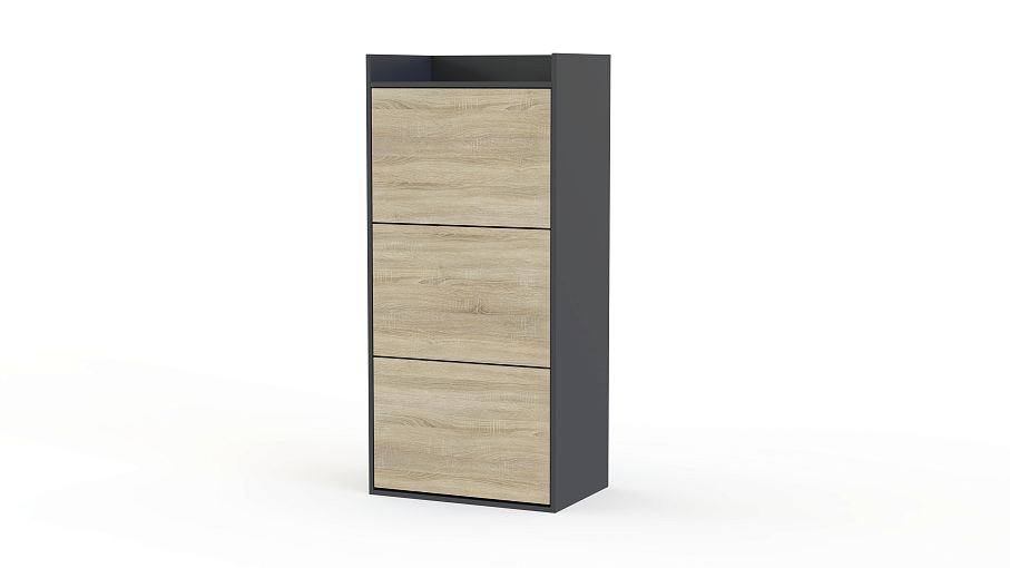 Обувница Дэнс XL BMS - лаконичная и выполненная в модной серо-бежевой гамме, выглядит актуально и отличается высокой функциональностью. Компактная и вместительная, закрытая тумба оборудована тремя откидными лотками для хранения обуви и оснащенной защитными бортиками столешницей для мелочей. Фасады без ручек и декора просты в уходе и эффектны в современном интерьере. Купить обувницу Дэнс XL BMS для стильной прихожей вы сможете в нашем интернет-магазине.
