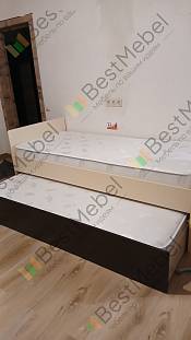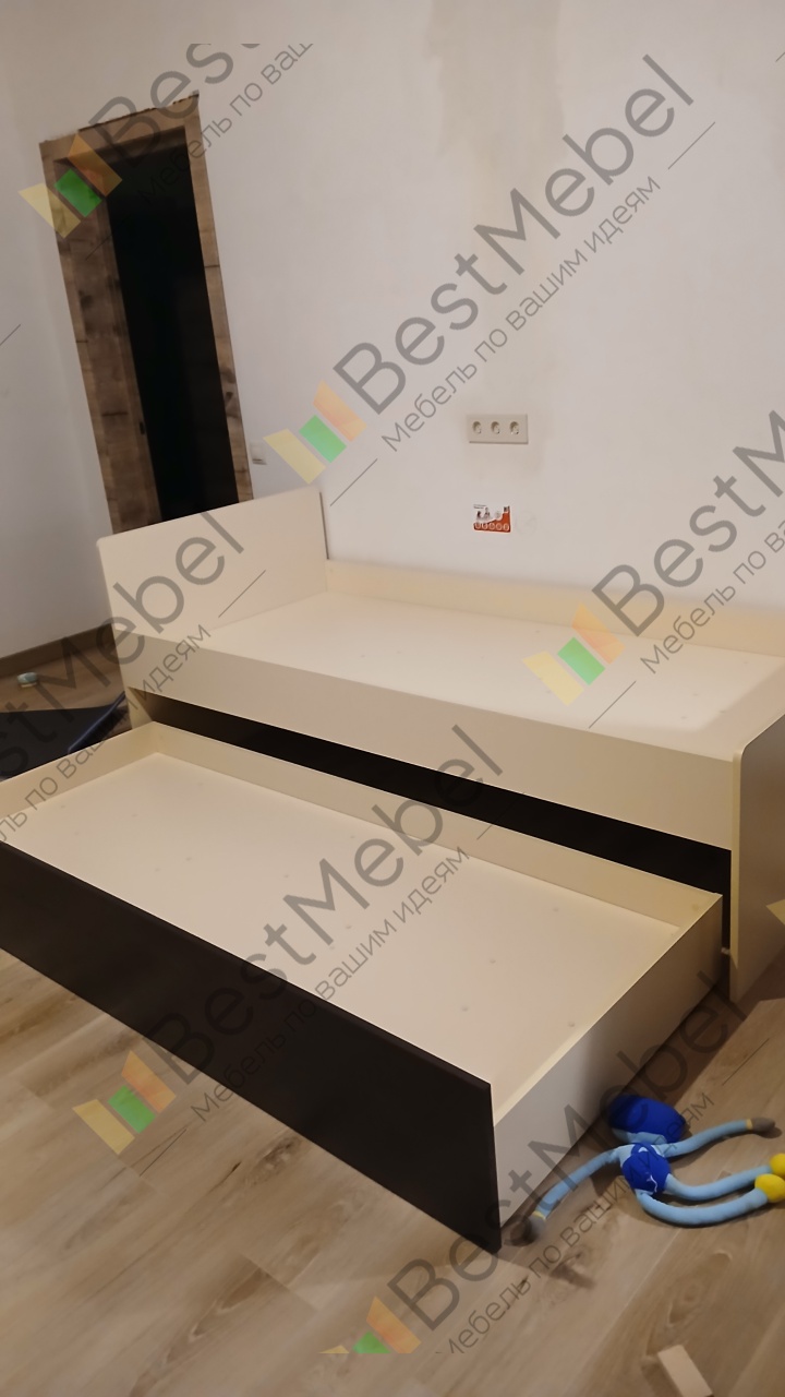 Кровать классная. Правда сразу уточню она без стоперов при выдвижении. Возможно можно заказать. Т.к. мебель на заказ и под ваши размеры. Но нам удобно без стоперов. можно полностью выдвинуть и помыть пол. А так же отодвинуть друг от друга, например, что бы не болтали. Тем более, что нижняя часть не очень низкая, тоесть, ребёнок на расстоянии от пола. Если хотите оставлять бельё в нижней части, то матрас покупайте более тонкий. С матрасом в 20 см. Только одеяло влезет Качество отличное. Смогла собрать сама, хотя впервые в жизни собираю кровать, ещё и такой сложности, зато после сборки поняла, что качество хорошее. Много креплений, что бы не развалилась, после чего она и стала более тяжёлой и для меня не подъемной. Надеюсь прослужит долго. Инструкция не подробная, но вмеру понятная. Рекомендую.