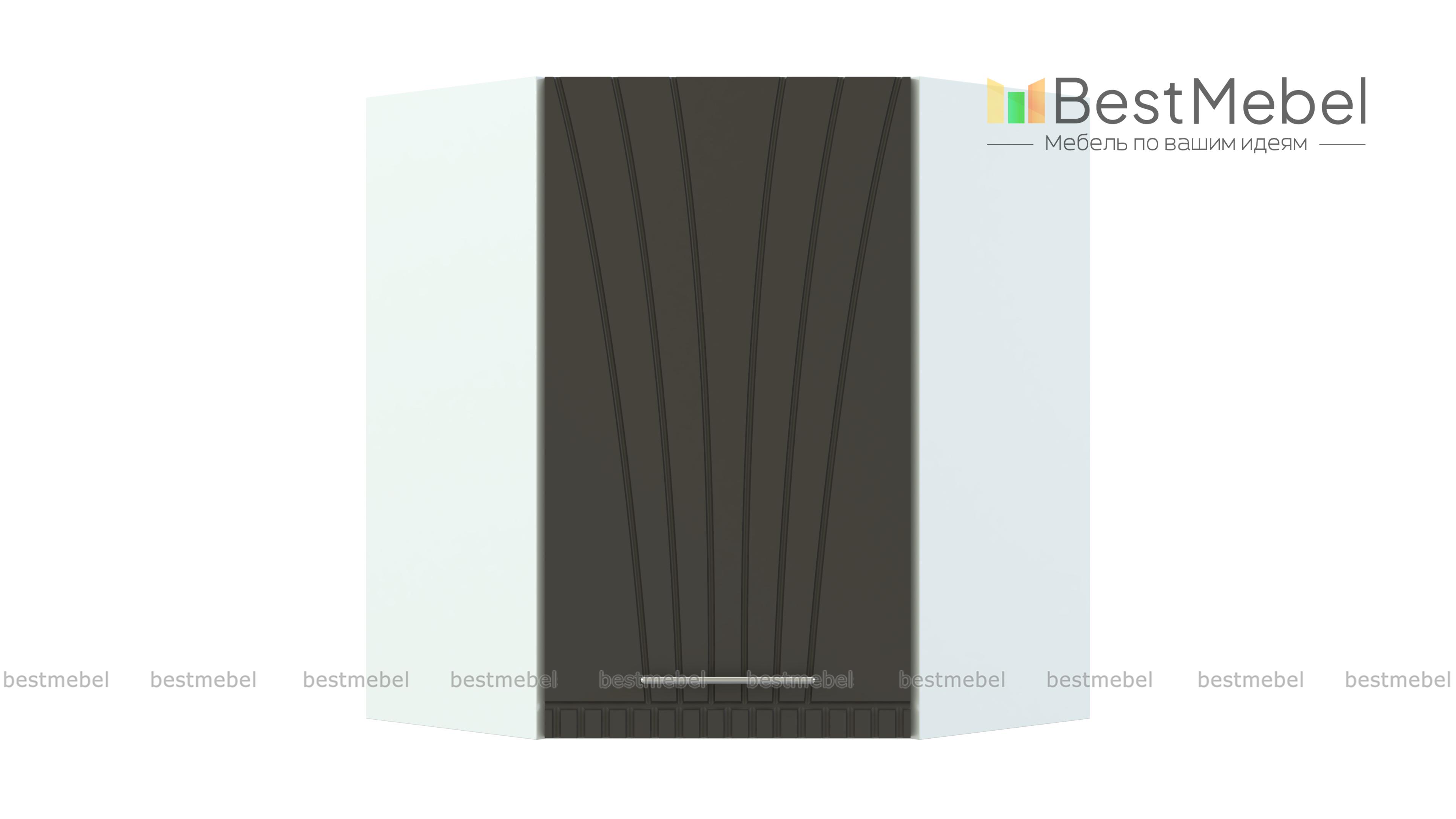 Шкаф навесной угловой Паллада BMS выполнен в форме трапеции и служит для стыковки прямых элементов в модульном Г-образном комплекте. Незаменимый предмет гарнитура, шкаф выгодно использует доступное пространство и экономит полезную площадь. За распашной дверцей располагается особенно просторное внутреннее отделение с полкой, удобное и для посуды, и для продуктов. Эффектный фасад яркого оттенка украшает фрезерованный рисунок в стиле модерн. Купить шкаф навесной угловой Паллада BMS приглашаем по приятной цене в наш интернет-магазин.