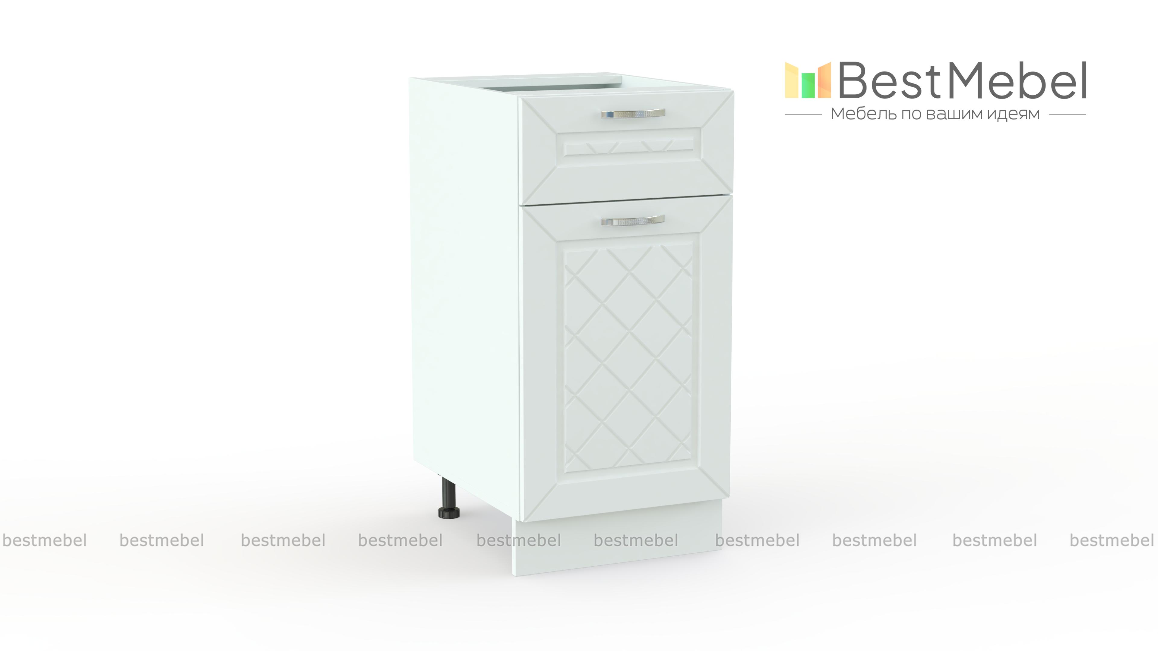 Шкаф нижний 1 дверь 1 ящик Агава BMS дополнит нижний ряд модулей кухонного гарнитура в классическом стиле. Компактная тумба легко впишется в интерьер малогабаритных помещений и будет незаменима для хранения как столовых приборов и прочих мелочей, так и более габаритных предметов. Под столешницей располагается выдвижной ящик, дополненный распашным отделением с полкой. Рамочные фасады украшает уютная фрезеровка ромбами. Купить шкаф нижний 1 дверь 1 ящик Агава BMS, подобрав цветовое решение, вы сможете недорого в нашем интернет-магазине.