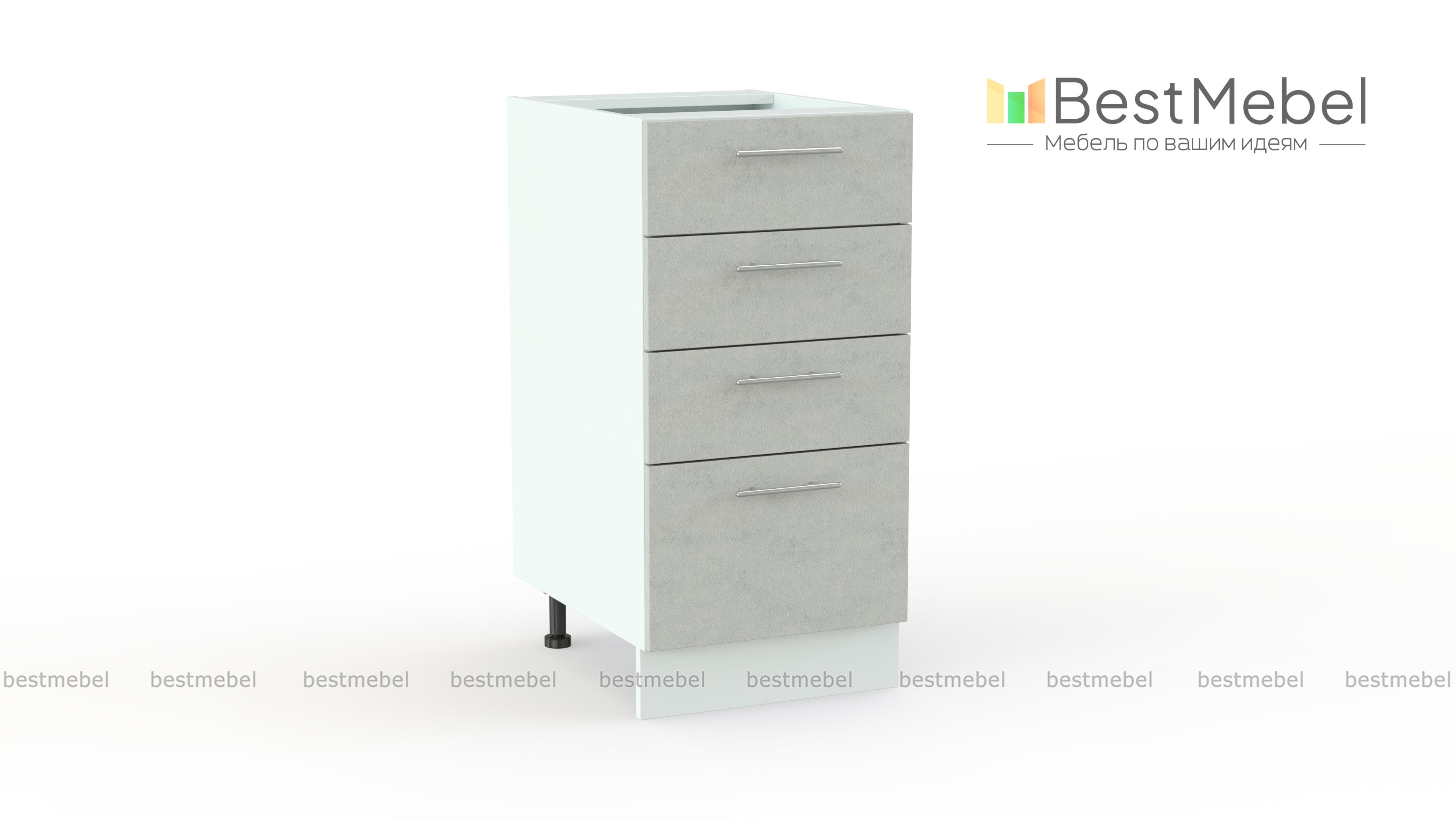 Шкаф нижний с 4-мя ящиками Оля BMS дополнит напольный ряд модулей кухонного гарнитура и оптимизирует хранение мелочей. Компактная и практичная, тумба оборудована тремя малыми и одним большим выдвижными ящиками, что позволит разместить как столовые приборы и прочие мелкие вещи, так и более габаритные кухонные принадлежности. Фасады пастельных тонов дополнены практичными ручками-скобами и легко вписываются в современные интерьеры. Купить шкаф нижний с 4-мя ящиками Оля BMS по доступной цене вы сможете в нашем интернет-магазине.