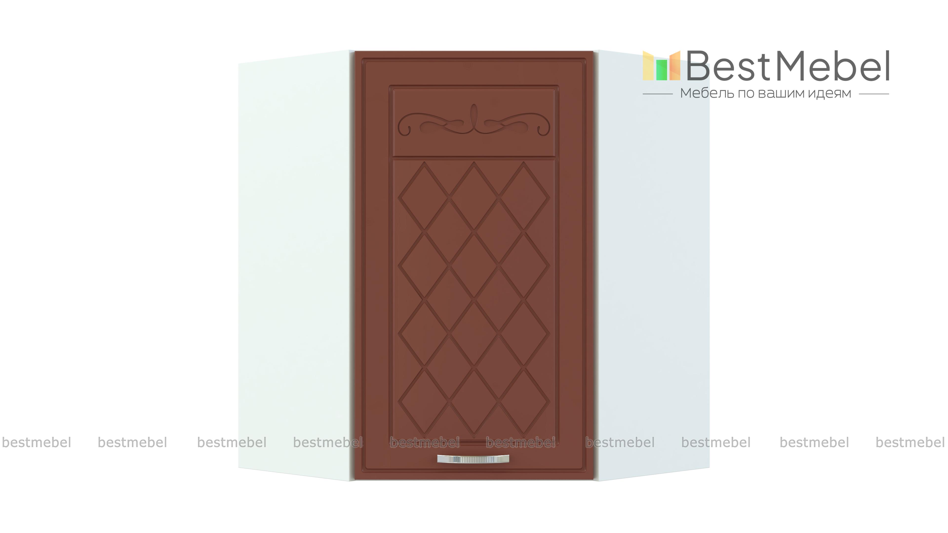 Шкаф угловой Чарли BMS отличается изящным дизайном и выполнен в форме трапеции. Практичная модель занимает центральное место в Г-образном кухонном гарнитуре и служит для стыковки прямых модулей. Шкаф позволит выгодно использовать возможности планировки и сэкономить полезную площадь, а для размещения посуды, продуктов и разнообразных кухонных принадлежностей предусмотрено просторное внутреннее отделение с полкой. Фасад распашной дверцы с фрезерованным рисунком станет настоящим украшением интерьера. Купить шкаф угловой Чарли BMS приглашаем в наш интернет-магазин.