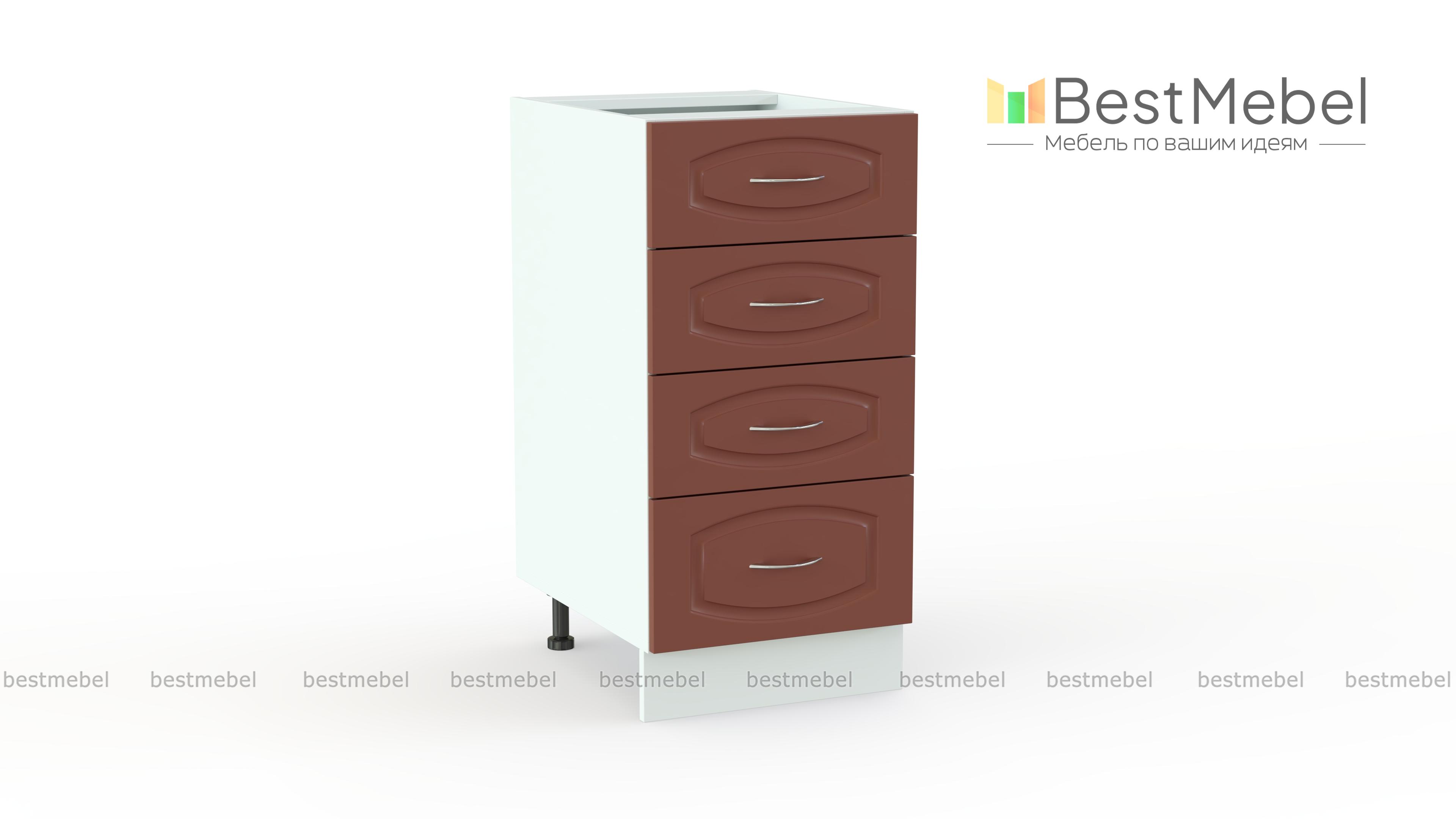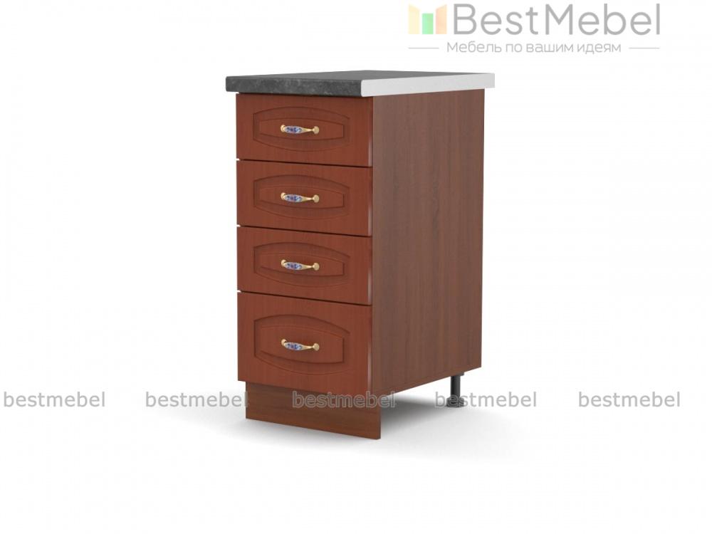 Стол с 4-мя ящиками Глория BMS станет незаменимым элементом практичного модульного гарнитура и поможет систематизировать хранение мелочей. Компактная тумба с четырьмя выдвижными ящиками разной высоты разместит под рукой все необходимое, и вам не придется тратить время на поиски нужной вещи. Фасады терракотовых оттенков с фрезеровкой гармонично дополнят другие модули эффектной классической серии. Купить стол с 4-мя ящиками Глория BMS и сделать интерьер функциональнее вам поможет наш интернет-магазин.