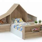 Кровать-домик Марс 13.4 BMS дополнена продуманной системой хранения для книг малыша, игрушек и важных мелочей. Высокое изголовье кровати выполнено в форме крыши и дополнено боковыми секциями с распашными тумбами и нишами, а в изножье располагается мини-стеллаж с открытыми полками. В оформлении кровати гармонично сочетаются светлые древесные тона и белый. Купить кровать-домик Марс 13.4 BMS для комнаты мальчика или девочки вы сможете в нашем интернет-магазине.