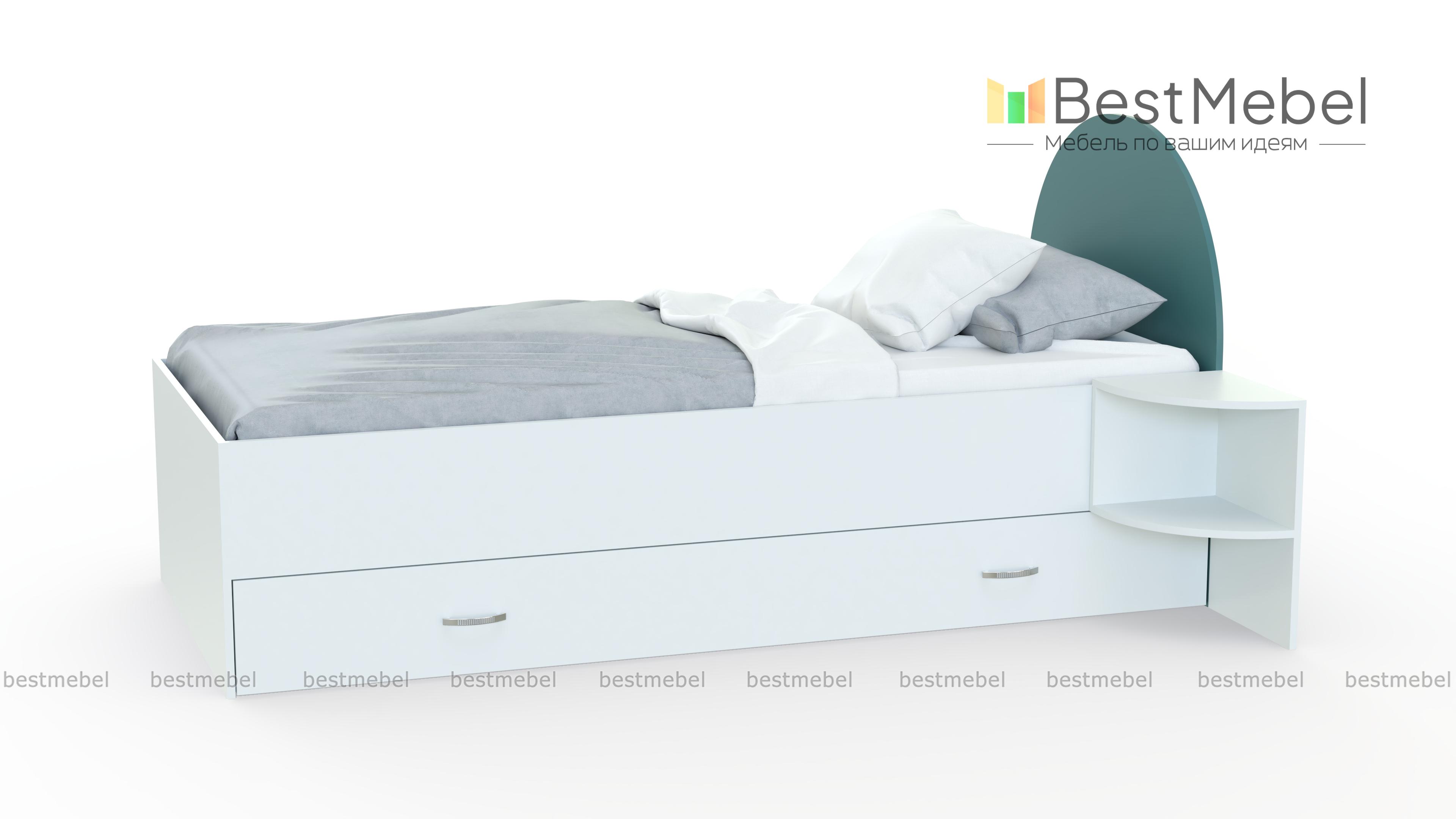 Кровать Princess BMS поможет обустроить уютную комнату для девочек. Современная модель с просторным спальным местом без спинки в изножье оборудована скругленным изголовьем и выполнена в сочетании светлых тонов и аквамаринового. Разместить под рукой необходимые мелочи поможет приставная тумба из пары открытых полок, а для постельного белья предусмотрен широкий ящик в основании. Купить кровать Princess BMS для изящного сказочного интерьера приглашаем в наш интернет-магазин.