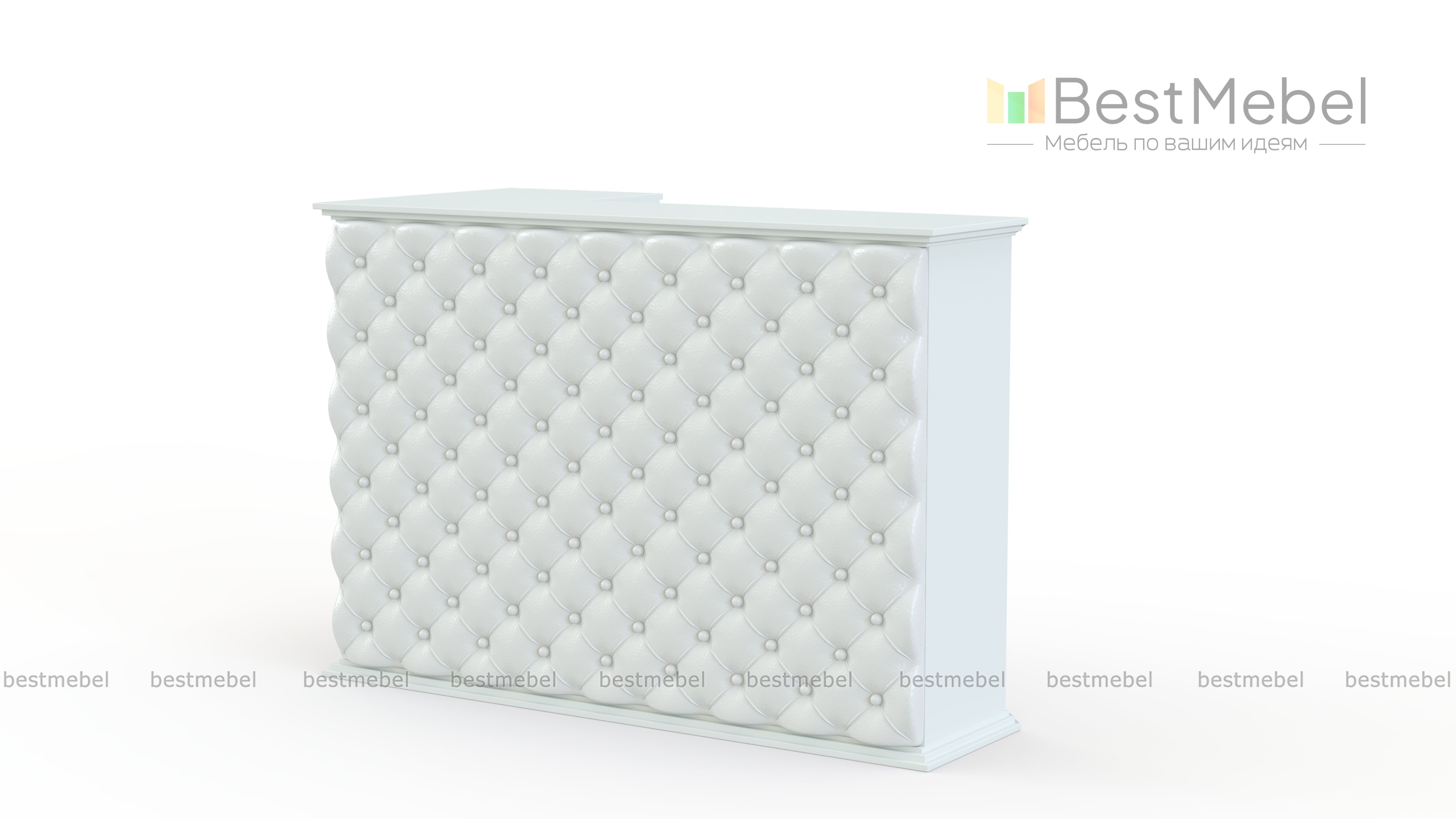 Стойка ресепшен Женева К-5 BMS подчеркнет имидж современного салона красоты или студии. В эффектной модели сочетаются практичность конструкции и изящный дизайн. Прямая стойка оборудована внешней столешницей для посетителей и внутренней – для работы администратора. Выполненная в белом цвете, модель делает помещение визуально просторнее, а стильным акцентом станет обивка в экокоже с каретной стяжкой. Купить стойку ресепшен Женева К-5 BMS приглашаем в наш интернет-магазин по лучшей цене.