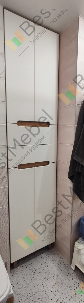 Заказ 836381. Шкаф полностью соответствует моим ожиданиям. Быстро помогли сделать по моим размерам. Согласовали эскиз. Доставка через 3 дня. Собирал супруг. Сложностей не возникло. Шкаф в ванной. За 2 года ничего с ним не произошло. Всё в полном порядке.