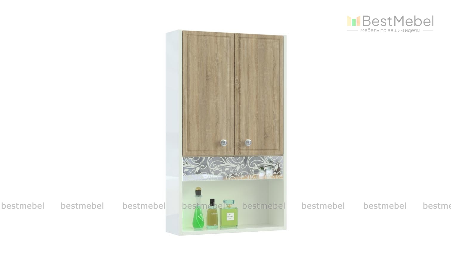 Шкаф в ванную Вента 3 BMS, декорированный фрезеровкой и зеркальной вставкой с изящным рисунком, станет настоящим украшением классического интерьера. Белоснежный шкафчик с фасадами древесного оттенка особенно вместителен за счет комбинированной конструкции и позволяет хранить под рукой все необходимые уходовые средства. Модель средних габаритов оборудована двухдверным распашным отделением и просторной нишей. Купить шкаф в ванную Вента 3 BMS по лучшей цене приглашаем к нам в интернет-магазин.