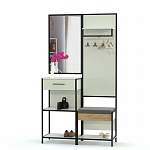Прихожая Глория 14 BMS оборудована всем самым необходимым для комфортного ухода за собой, хранения одежды, обуви и аксессуаров. Модульная композиция включает в себя тумбу с выдвижным ящиком и полками, навесное зеркало и открытую вешалку, дополненную банкеткой с отделением для обуви. ЛДСП с имитацией фактуры дерева и металлический профиль создают прочную и легкую конструкцию. Купить прихожую Глория 14 BMS для меблировки лофта вы сможете в нашем интернет-магазине.