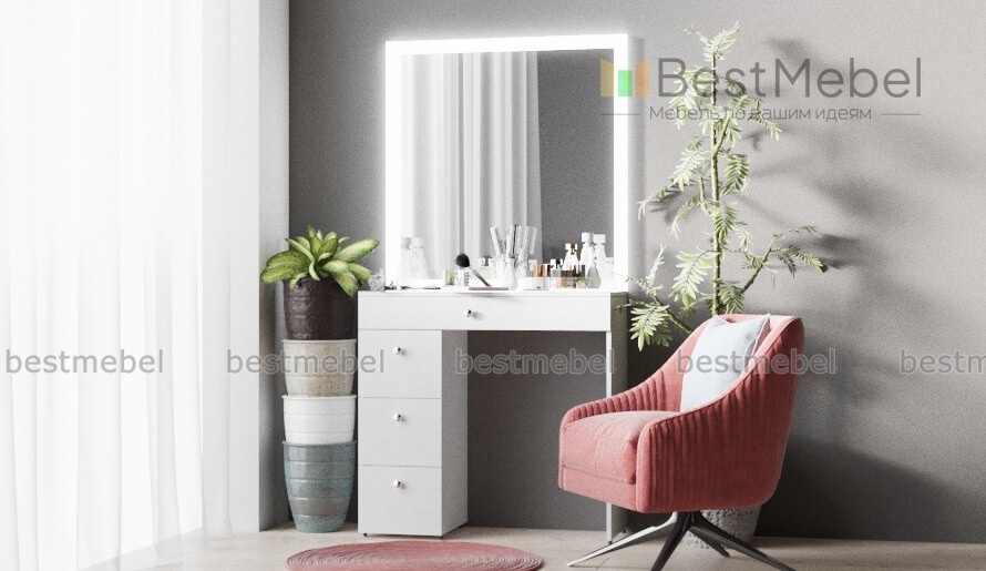 Туалетный столик Гласс 2 BMS сочетает в себе высокую функциональность и эффектный современный дизайн. Компактная по размеру и лаконичная, модель оборудована просторной столешницей, четырьмя выдвижными ящиками разных размеров для уходовых средств, украшений и аксессуаров,Модель без зеркала