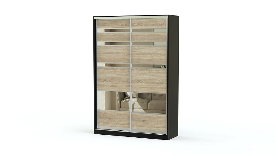 Шкаф-купе двухдверный Стандарт ДСП BMS отличается оригинальным дизайном фасадов, которые сделают интерьер спальни или прихожей стильным и запоминающимся. Раздвижные дверцы шкафа выполнены в оттенках, имитирующих текстуру дерева, и дополнены горизонтальными зеркальными вставками. Внутри располагаются полка и просторное отделение со штангой. Купить шкаф-купе двухдверный Стандарт ДСП BMS по отличной цене приглашаем в наш интернет-магазин.