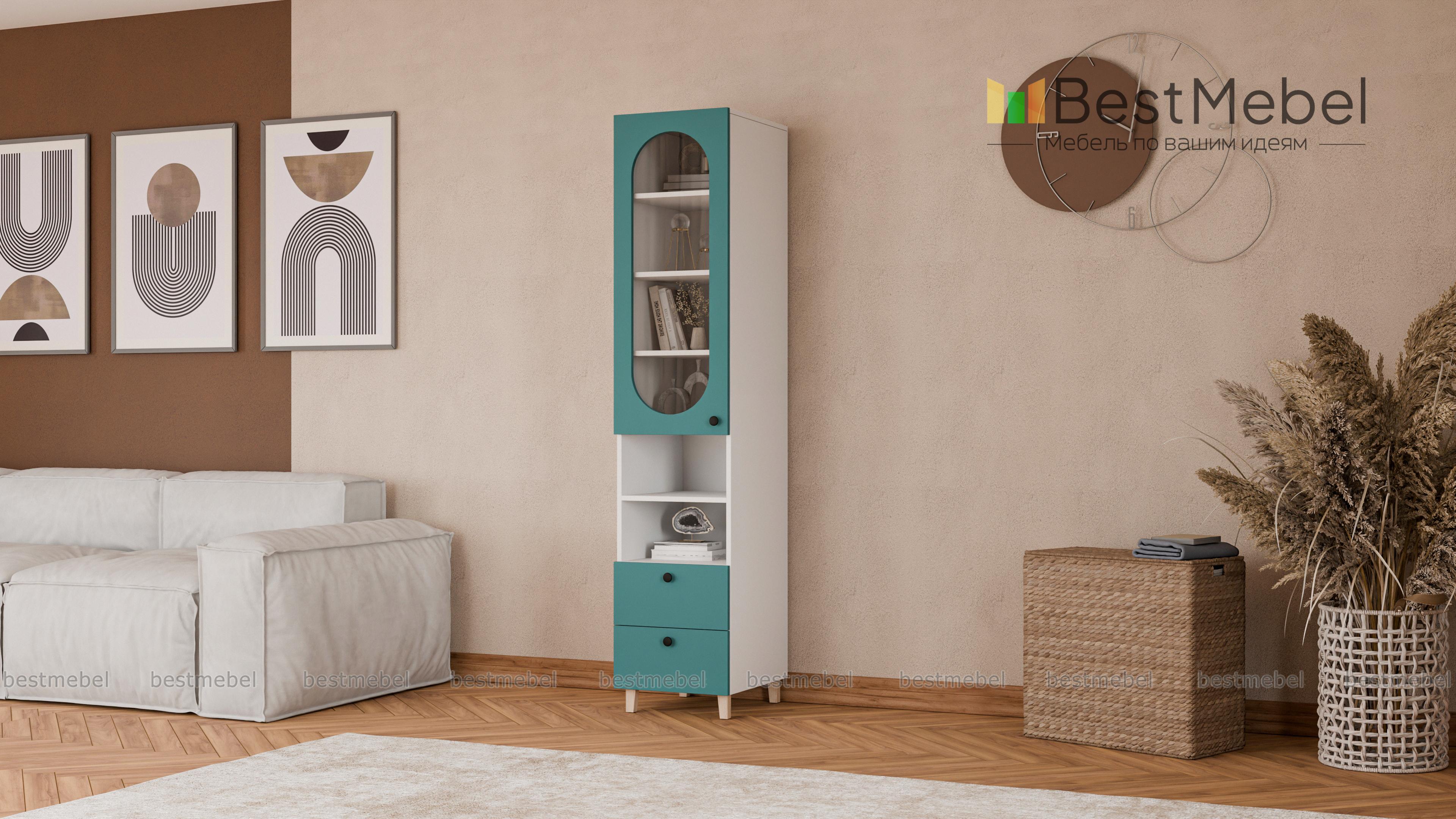 Шкаф-пенал Рене 3 BMS с витриной будет востребован в гостиной, детской комнате или столовой. Остекленное отделение, две открытые секции и два ящика позволят разместить на виду необходимые вещи и предметы декора, навести порядок в мелочах. Конструкция с высокими ножками визуально легкая, универсальный светлый фасад украшает овальный вырез. Купить шкаф-пенал Рене 3 BMS приглашаем в наш интернет-магазин с выбором размеров, фурнитуры и цвета по каталогу.