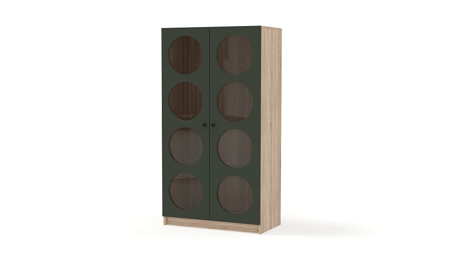 Шкаф распашной Руди 2 BMS — это уникальный стиль и функциональность по доступной цене. Двухдверный шкаф со стеклянными фасадами и широкими полками можно использовать как книжный или витрину для посуды, ценных вещей и предметов декора. Акцентные дверцы выполнены в насыщенном темном оттенке из МДФ и оформлены восемью большими круглыми вырезами. Купить шкаф распашной Руди 2 BMS вы всегда сможете в нашем интернет-магазине с выбором размеров, цвета и фурнитуры.