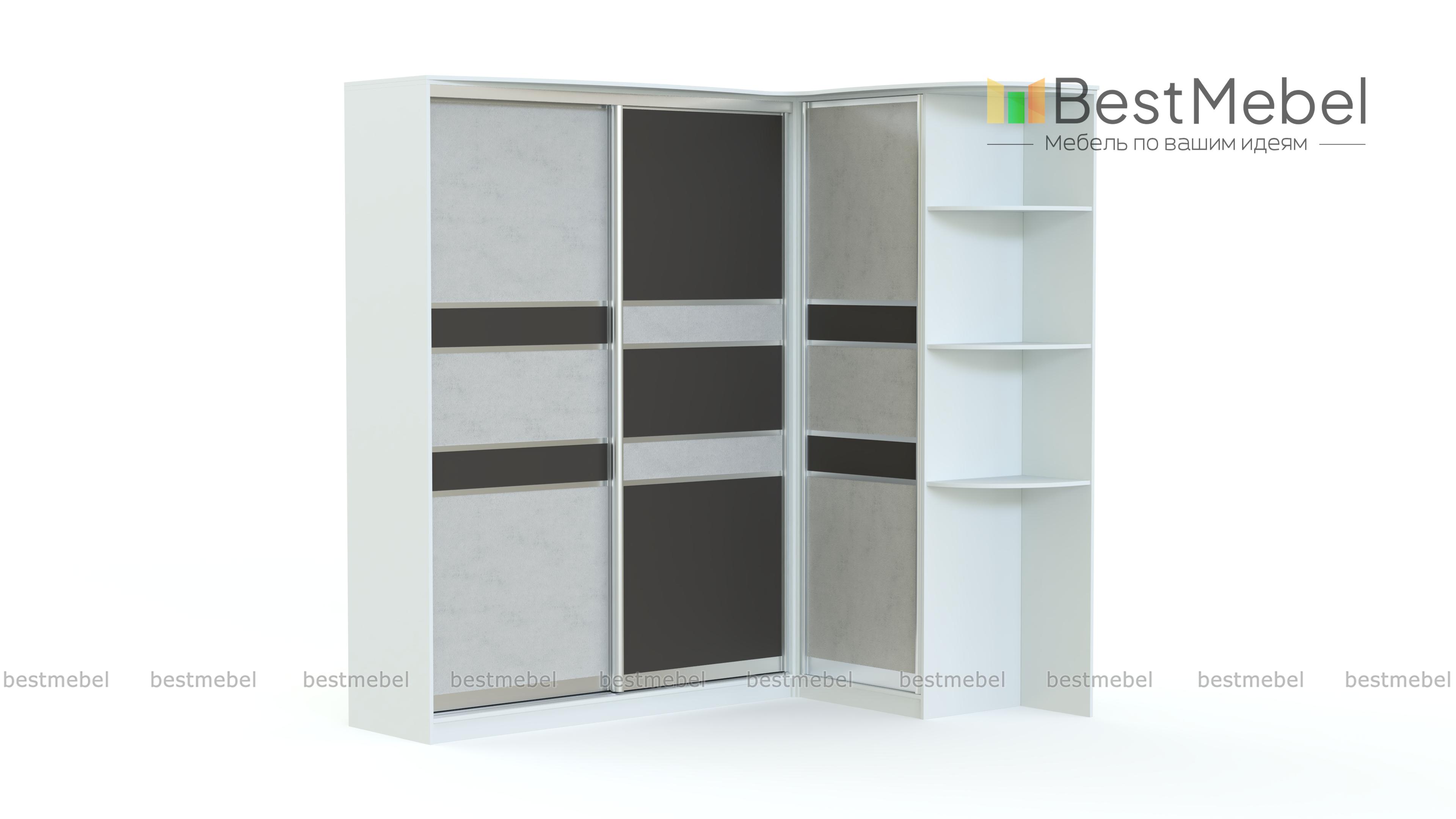 Угловой шкаф Композиция 91 BMS – многофункциональная модель для меблировки современной спальни, гостиной или прихожей. Практичная конструкция экономно использует доступное пространство и включает в себя двухдверный и однодверный шкафы со штангой и бельевыми полками, дополнительно возможно установить выдвижные ящики для мелочей. Приятным дополнением станет торцевой стеллаж для предметов декора и средств по уходу. Древесные расцветки и геометричный декор фасадов легко впишутся в интерьеры разного типа. Купить угловой шкаф Композиция 91 BMS и оптимизировать хранение вам поможет наш интернет-магазин.