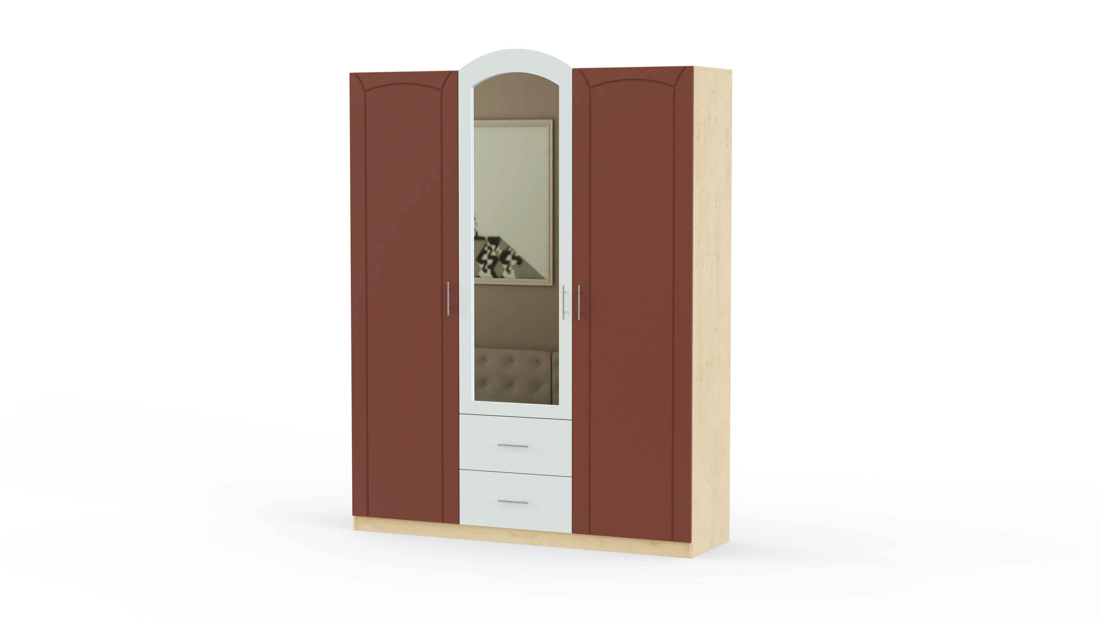 Спальня Марта 01 BMS – светлый и визуально легкий комплект с элементами стиля ар-деко. Модель в сочетании темных и светлых древесных тонов, декорированная овальными вставками, скругленными линиями и фрезеровкой, придется по душе тем, кто предпочитает лаконичный и элегантный дизайн. В комплект входят просторная кровать с прикроватными тумбами, комод с выдвижными ящиками, навесное зеркало и вместительный трехдверный шкаф для белья и одежды. Купить спальню Марта 01 BMS приглашаем по лучшей цене в наш интернет-магазин.