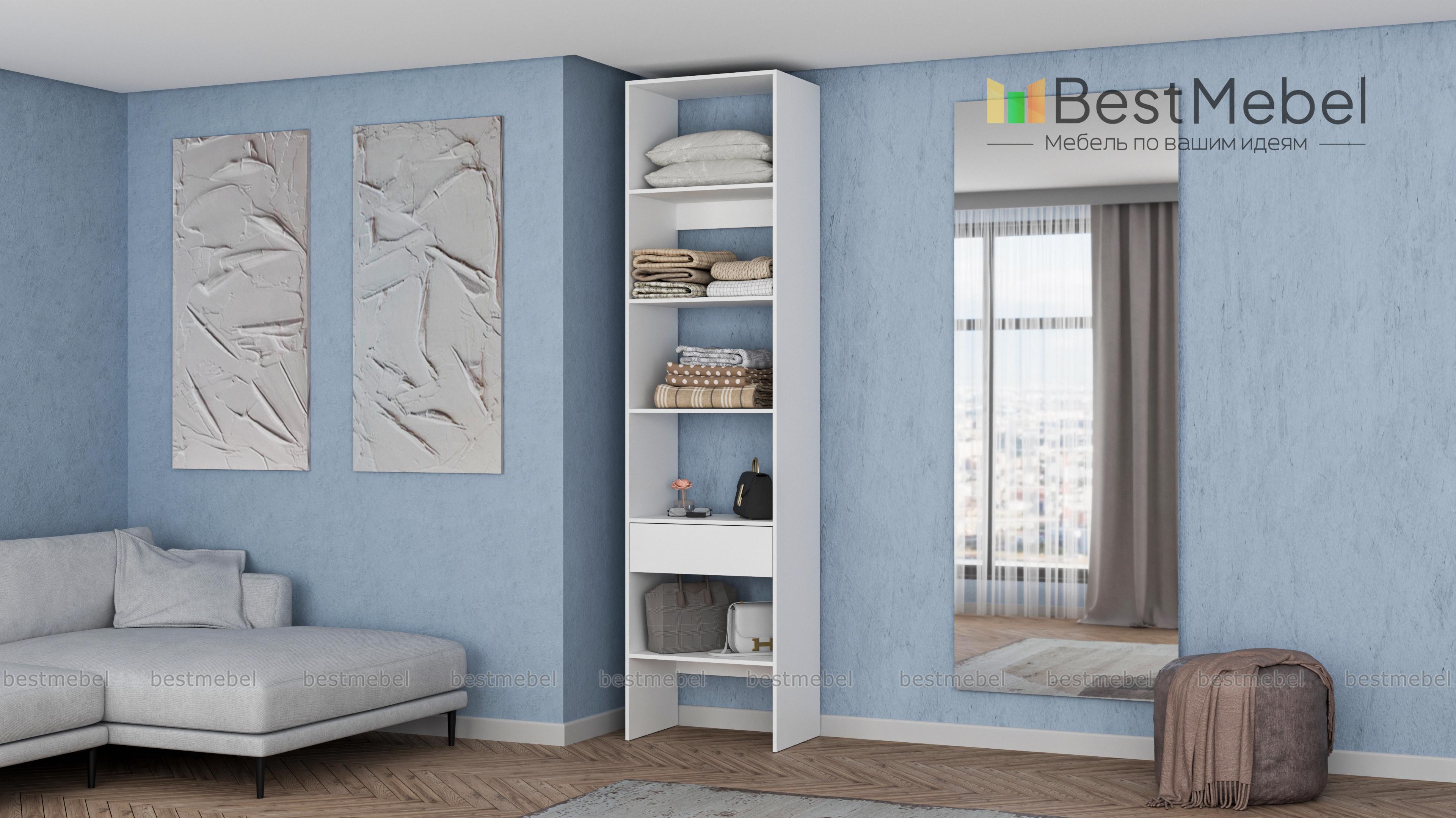 Стеллаж для одежды Мирта 34 BMS можно установить в спальне, прихожей или гардеробной. Компактные размеры конструкции и лаконичный современный дизайн прекрасно подходят для малометражных помещений. Четыре полки и выдвижной ящик позволяют вам разместить на удобной высоте обувь, одежду в сложенном виде, контейнеры и корзины для хранения. Купить стеллаж для одежды Мирта 34 BMS с изготовлением по индивидуальным размерам вы сможете недорого в нашем интернет-магазине.