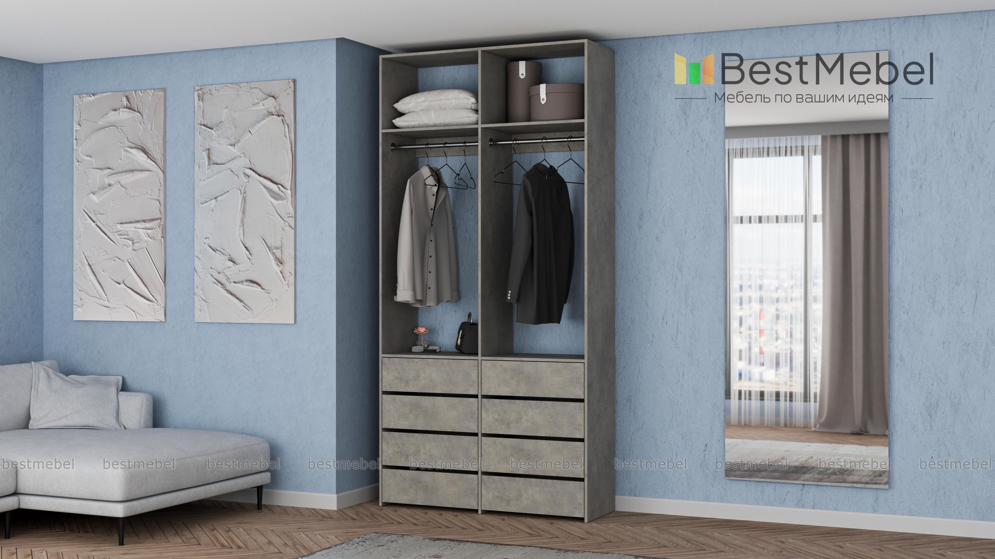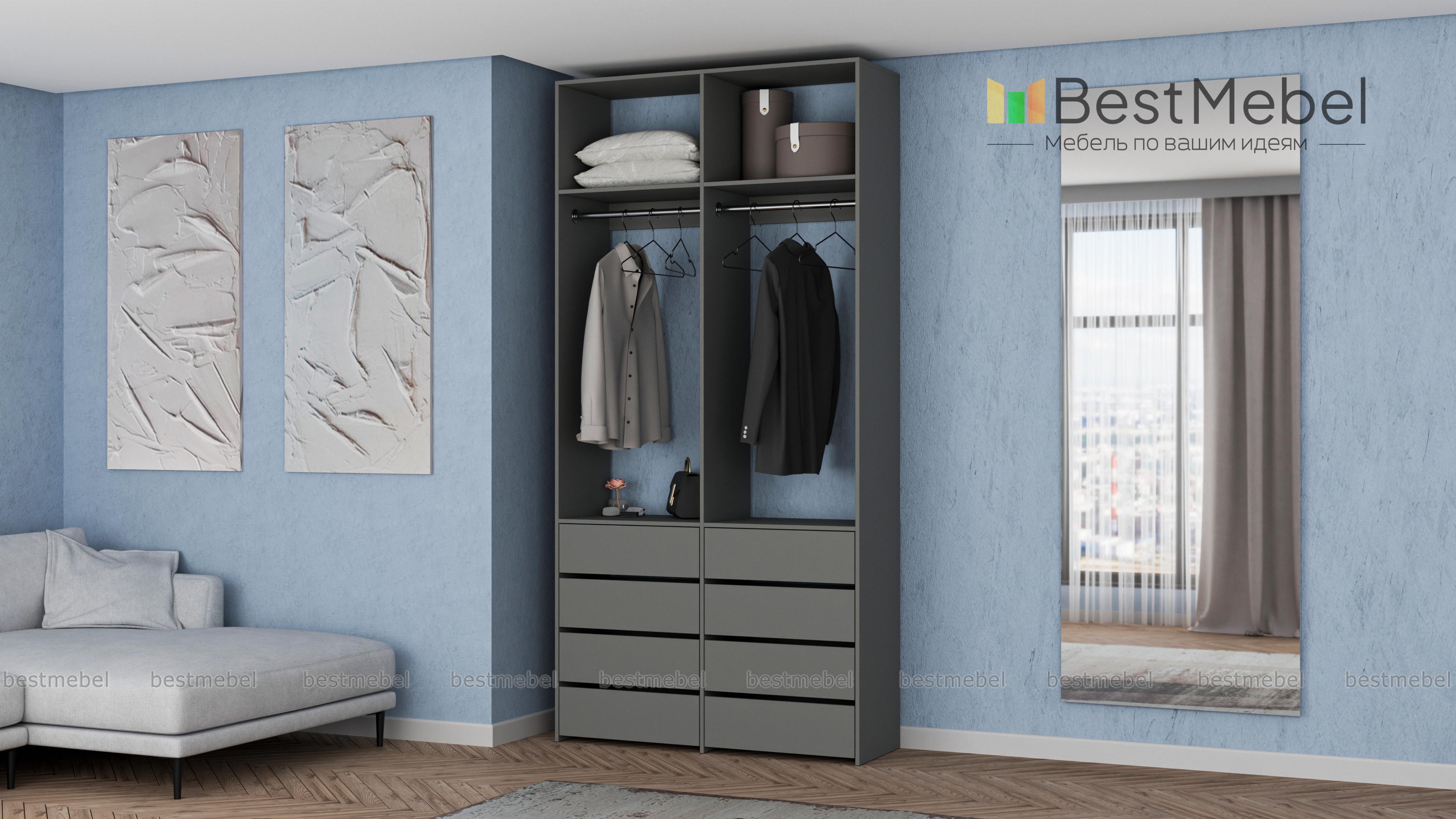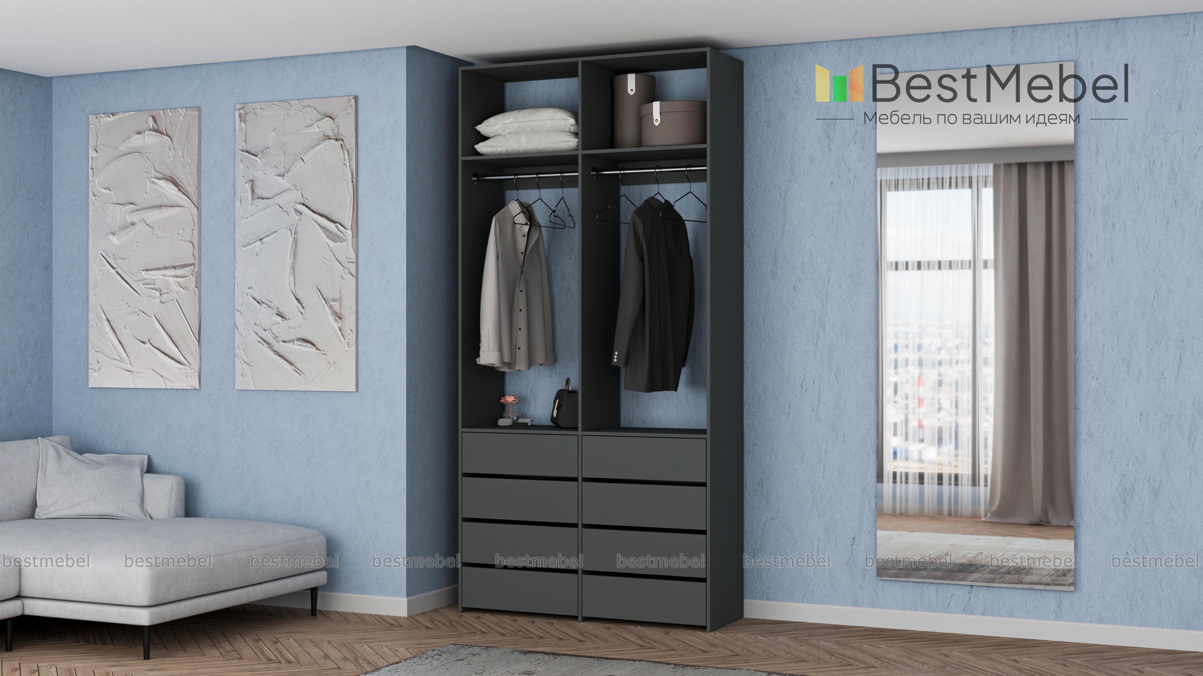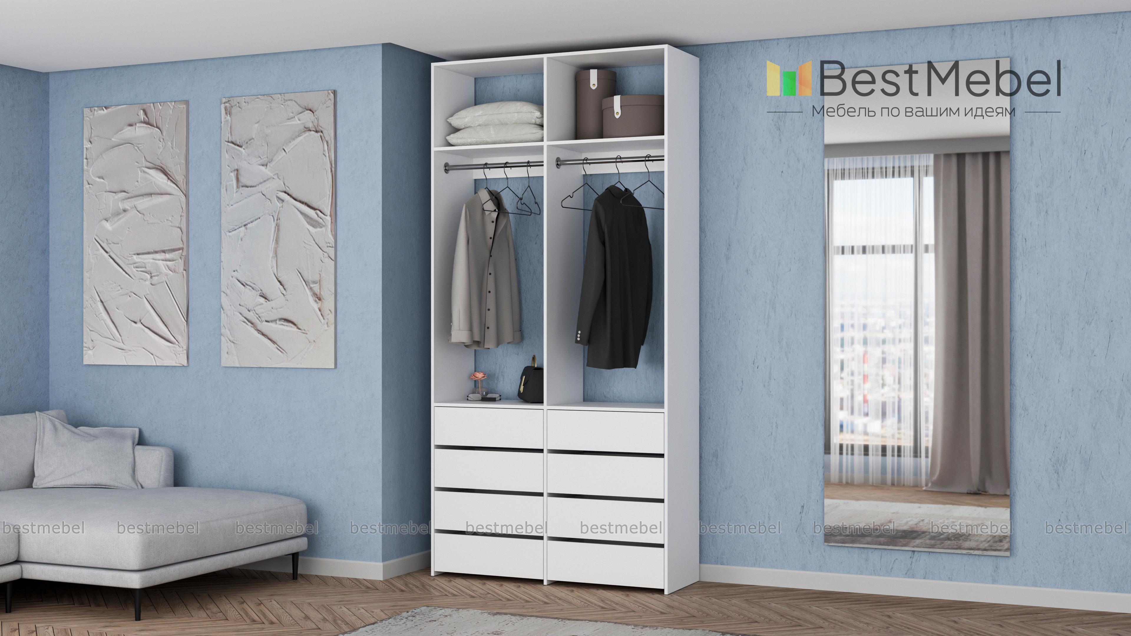 Стеллаж для одежды Мирта 44 BMS — это готовое решение в вашу гардеробную или прихожую. Продуманной системой хранения с двумя штангами, верхними полками и двумя рядами бельевых ящиков удобно пользоваться, не тратя время на поиски нужных вещей. Ламинированное покрытие эстетично выглядит, отличается прочностью и долговечностью. Купить стеллаж для одежды Мирта 44 BMS вы сможете на сайте нашего интернет-магазина с изготовлением по индивидуальным размерам.