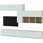 Стенка - что надо. Минимализм рулит. Дополнительно заказали еще один напольный шкаф, панель за телевизор. Перевернули два верхних длинных шкафа. Теперь открываются как секретер.