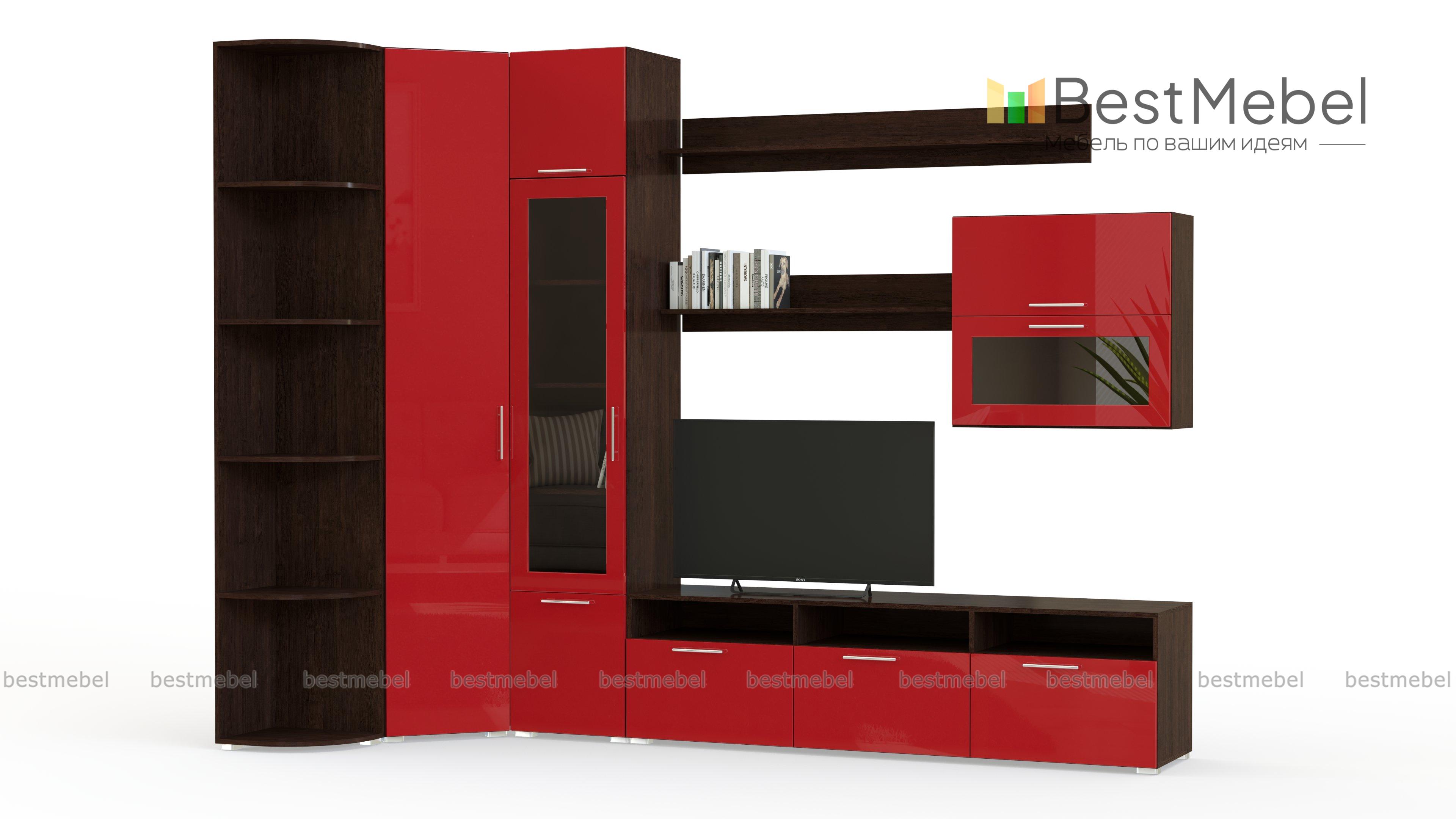 Стенка Ватсон 10 BMS – это угловая модульная композиция, которая станет отличным решением для небольших гостиных. Практичная конструкция поможет сэкономить полезную площадь комнаты, а яркий дизайн сделает интерьер запоминающимся. В комплекте шкаф для одежды, торцевой скругленный стеллаж, комбинированный шкаф с витриной, широкая тумба с нишами под аппаратуру, навесной шкафчик и открытые книжные полки. Матовые фасады стенки дополнены ручками-рейлингами. Купить стенку Ватсон 10 BMS приглашаем недорого в наш интернет-магазин.