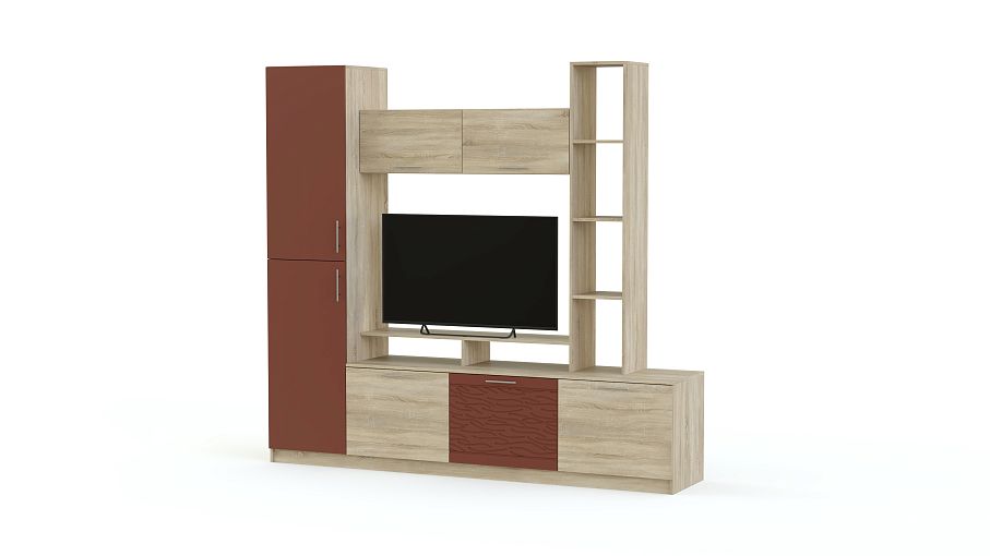 Стенка Вельвет 3 BMS – компактная модель из популярной современной серии. Композицию отличает визуальная легкость, геометричность и простота. В комплект входят колонка с бельевыми полками, низкая тумба с подставкой под ТВ, мини-стеллаж и антресольная секция с откидными дверцами. Сочетание открытых и глухих отделений позволит разместить книги, предметы декора и множество мелочей, а фасады древесных оттенков с матовыми вставками, декорированными рельефным рисунком, украсят гостиную. Купить стенку Вельвет 3 BMS приглашаем недорого в наш интернет-магазин.