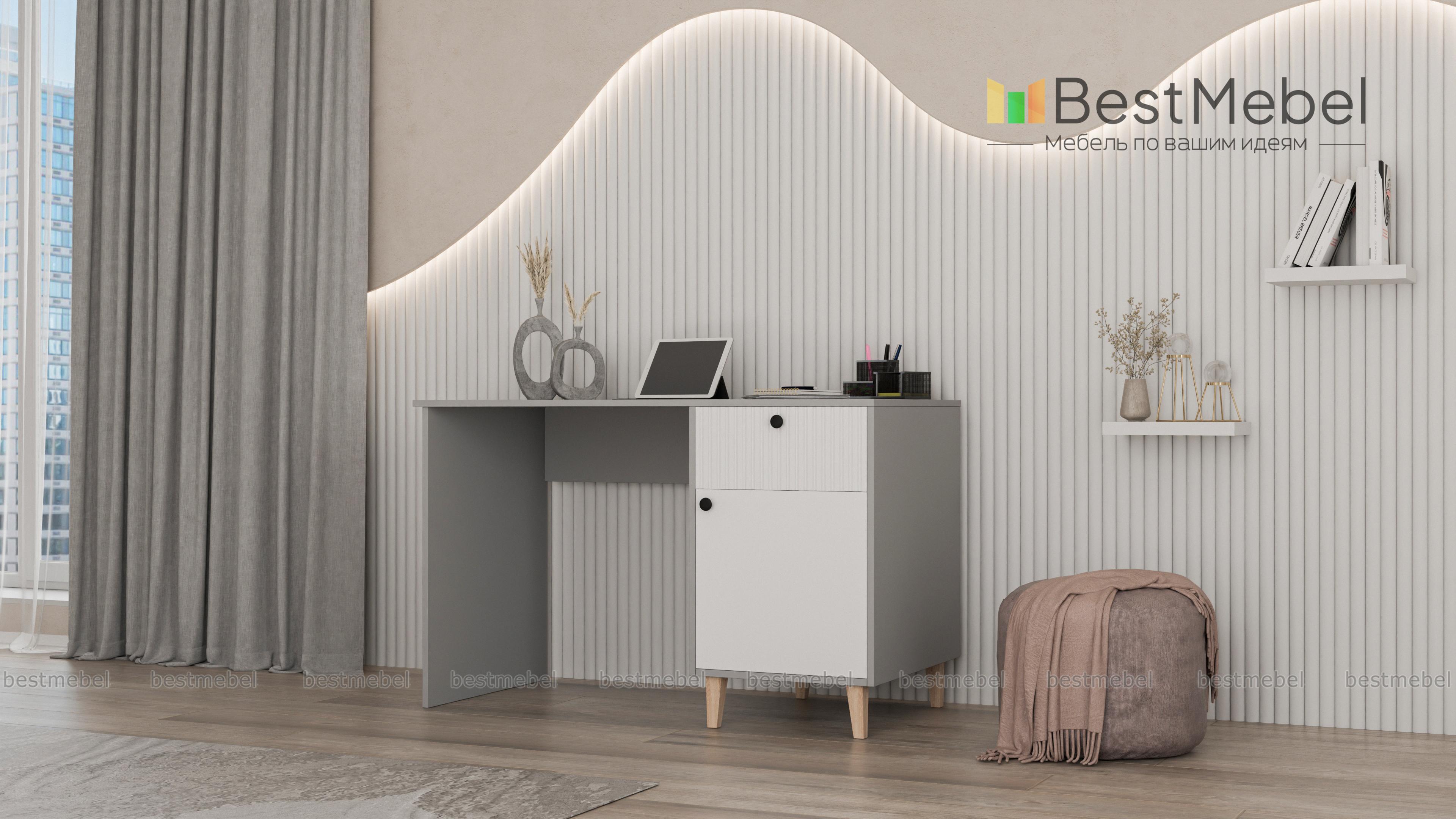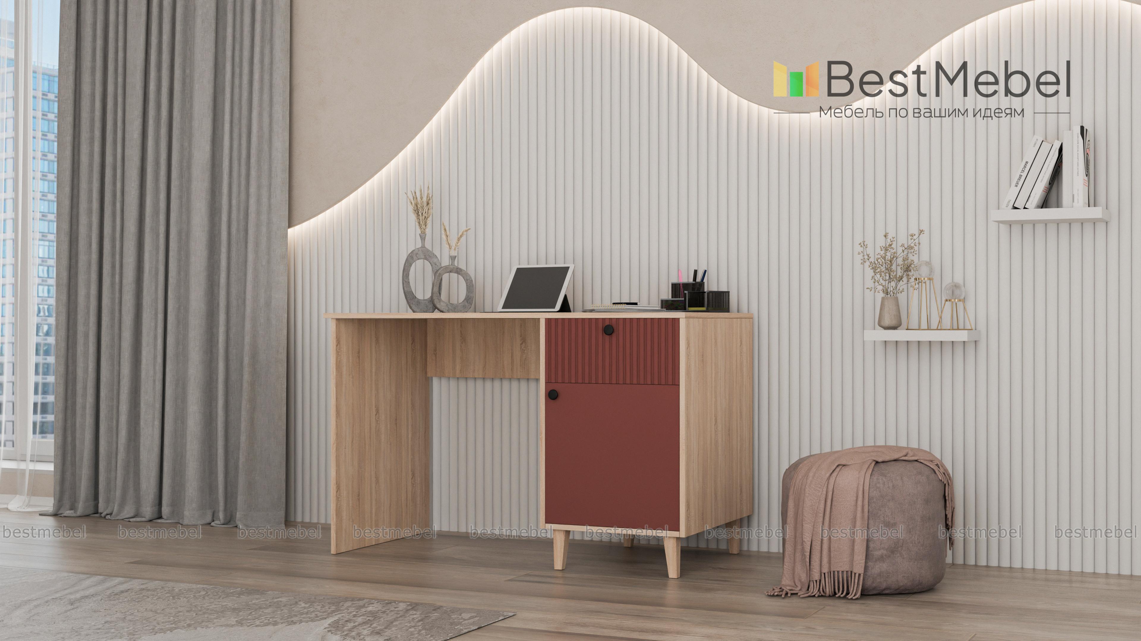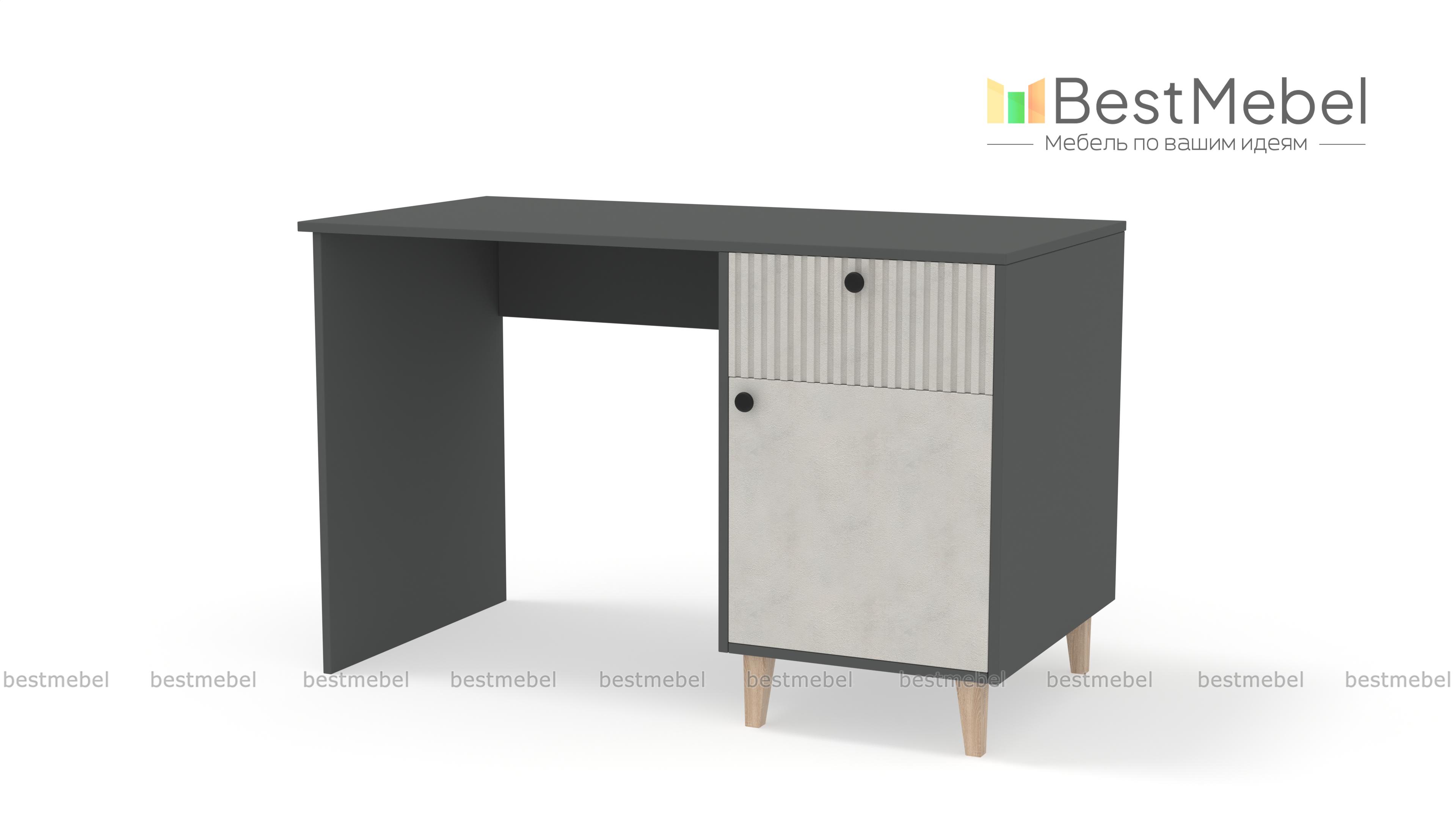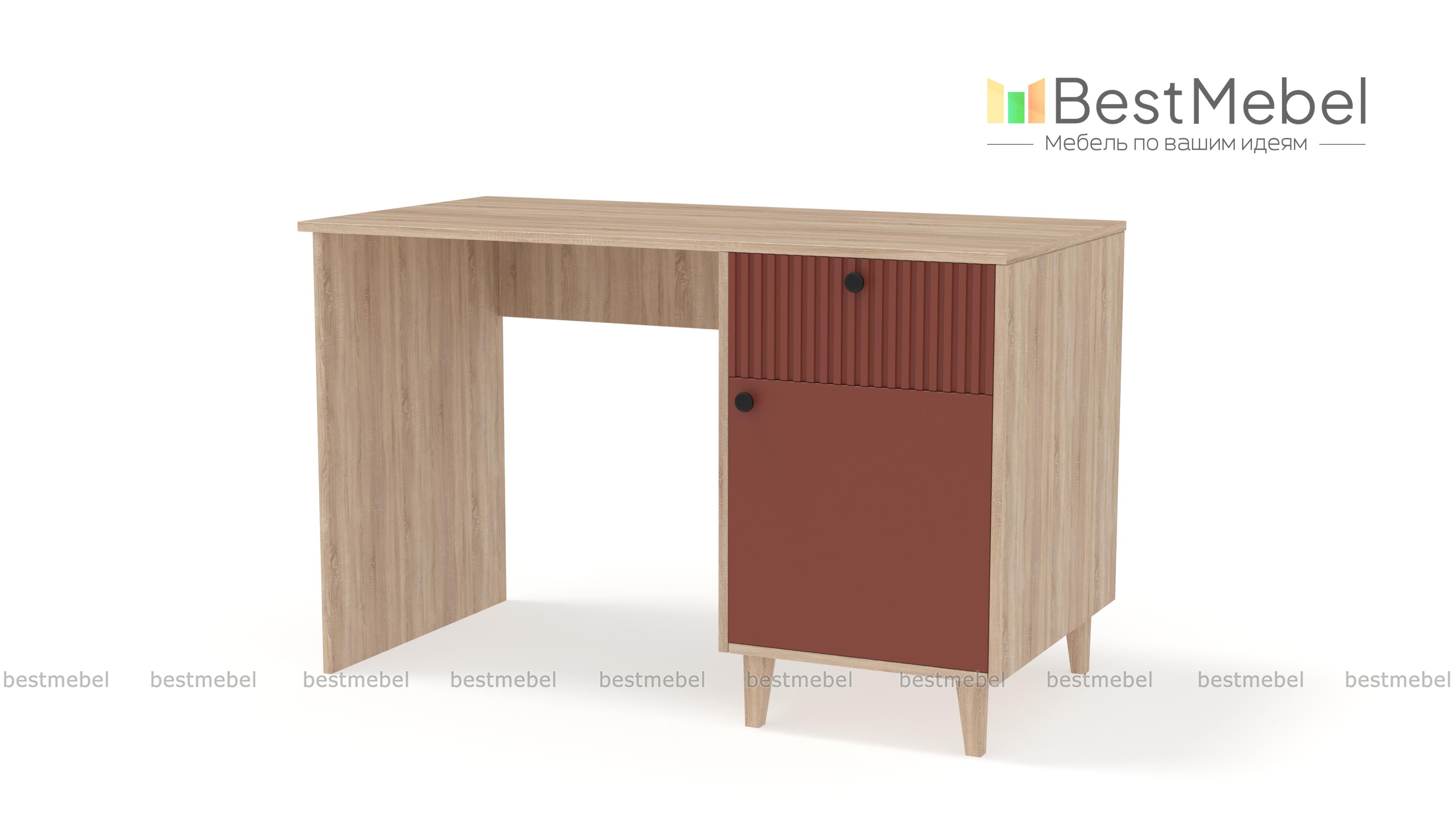 Стол письменный Брукс 3 BMS сочетает классическую форму с актуальным дизайном. Прямоугольная столешница и корпус выполнены из устойчивой к повреждениям ламинированной плиты природного оттенка, контрастный фасад украшает стильный рельеф. Для хранения канцелярских мелочей и других рабочих материалов используйте выдвижной ящик и распашное отделение с полками. Купить стол письменный Брукс 3 BMS вы сможете в нашем интернет-магазине, подобрав размеры, цвет и фурнитуру.