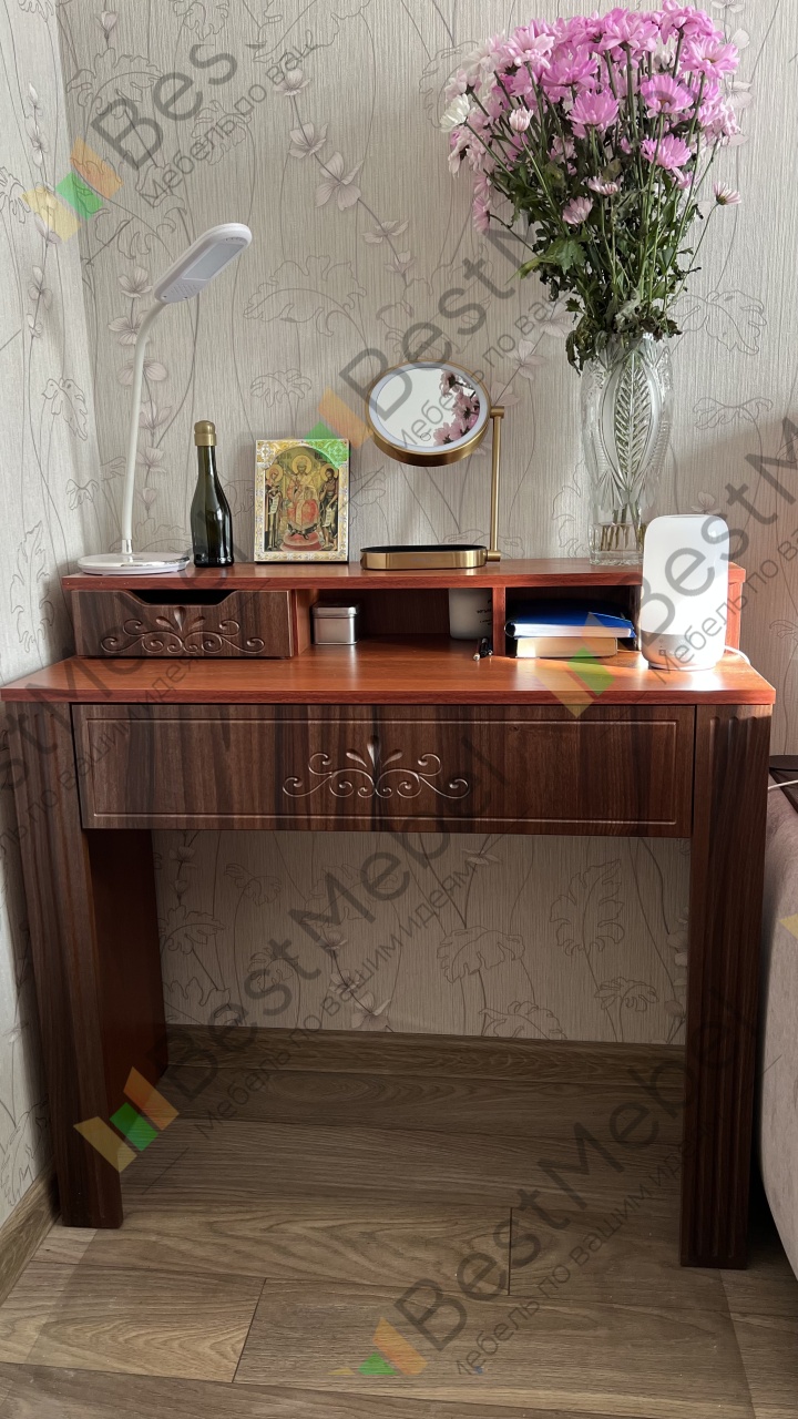Трюмо Жаклин Д-11 BMS выполнено в универсальных темных тонах и украшено по фасаду изящной фрезеровкой. Модель гармонично дополнит интерьер спальни в классическом стиле и сделает уход за собой комфортным. Трюмо оборудовано просторной столешницей с выдвижным ящиком для мелочей и надстройкой, оборудованной нишами и миниатюрным ящичком. Устойчивость конструкции обеспечивают широкие боковины с накладками. Купить трюмо Жаклин Д-11 BMS вы сможете по выгодной цене в нашем интернет-магазине.