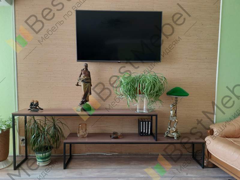 Тумба под ТВ Дарси 19 BMS – это двухъярусная ступенчатая модель, которая поможет вам интересно оформить телезону в лофтовом интерьере. Простая и функциональная конструкция с широкими столешницами из ЛДСП теплых древесных тонов располагается на металлическом каркасе. Тумба открытого типа – идеальное решение для размещения аппаратуры, книг, всевозможных сопутствующих аксессуаров и декоративных предметов. Купить тумбу под ТВ Дарси 19 BMS приглашаем в наш интернет-магазин с выбором цвета и размеров.